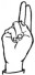 На ћирилици написано ДАНИЈЕЛ ПАВИН састоји се из 12 слова [?]. Исписано ћириличном једноручном азбуком за глувонеме: